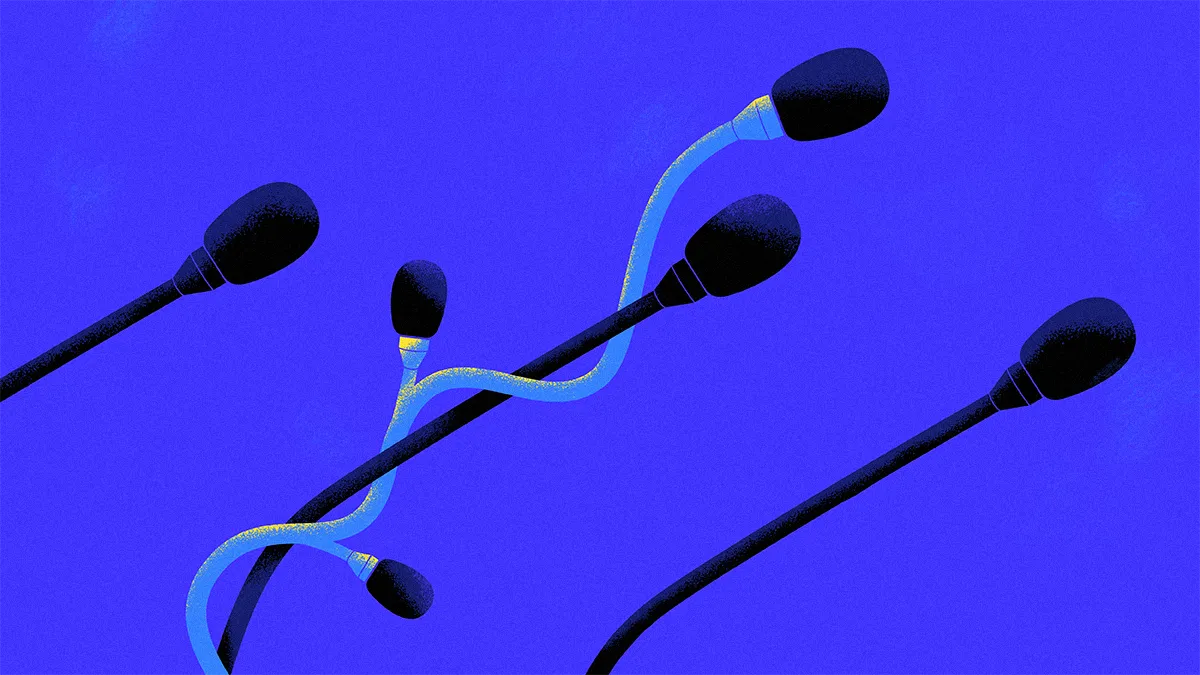Dans le public, une participante porte un pull sur lequel est brodé l’acronyme « TERF » (abréviation en anglais de « féministe radicale excluant les personnes transgenres »). Assise à côté d’elle, une femme arbore un t-shirt avec l’inscription «…